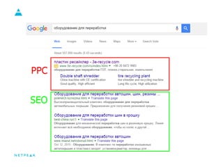 Документ обсуждает стратегии увеличения продаж для B2B-сектора через контекстную рекламу и SEO. Он описывает особенности B2B-сегмента, цели и задачи рекламы, а также преимущества и недостатки SEO и контекстной рекламы. Основное внимание уделяется важности оптимизации сайта и управляемости контекстной рекламы для достижения бизнес-целей.