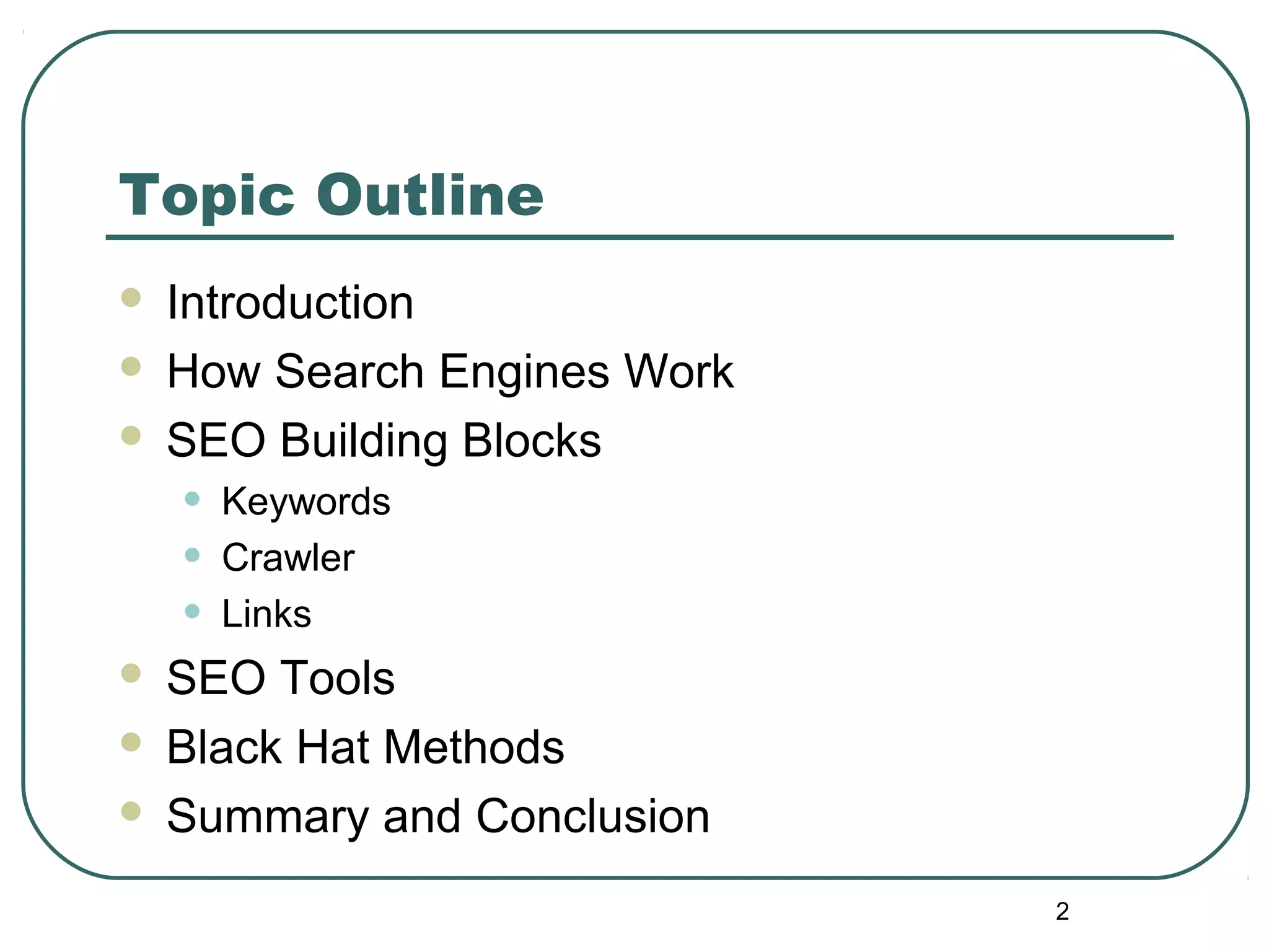 This document provides an overview of search engine optimization (SEO), explaining its significance in increasing website visibility through effective keyword usage, links, and crawler-friendly practices. It distinguishes between white hat and black hat SEO methods, emphasizing the importance of abiding by search engine guidelines for long-term success. The document also covers SEO tools and strategies, as well as the critical role of content quality in achieving high search rankings.