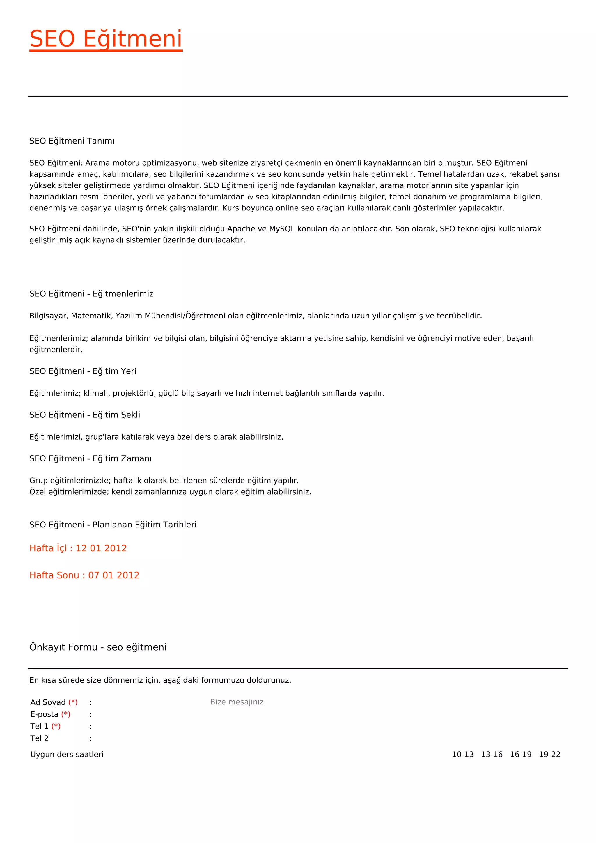 SEO Eğitmeni - Eğitim Zamanı