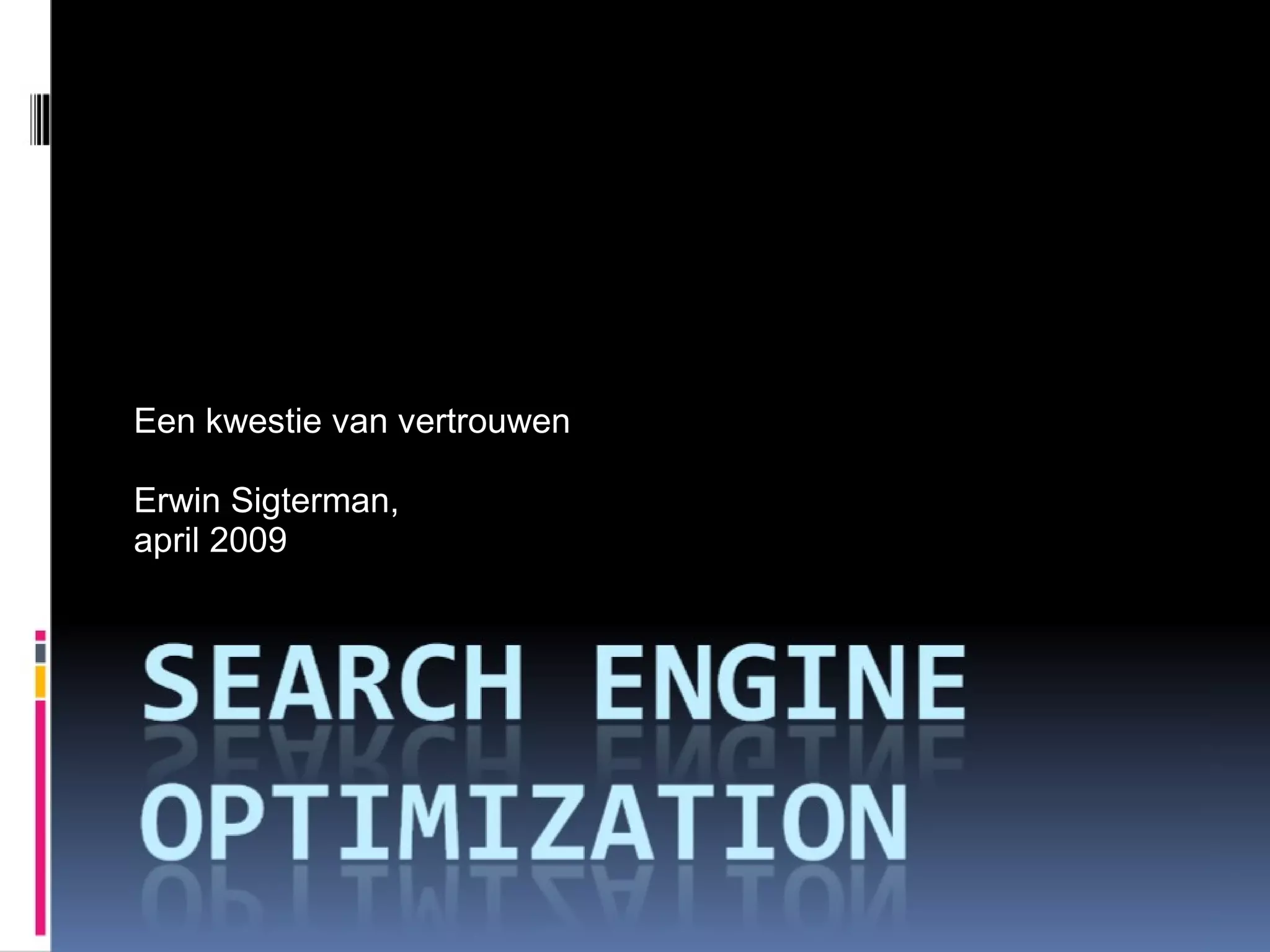 SEO Factors geschiedenis(2) 2005 Titel van pagina Hyperlink text Header Tag: H1, H2, H3, etc. Anchor text Bold/italic Body text boven, midden en onderste gedeelte Alt tags in plaatjes met link URL Description, keywords Alt tags in plaatjes zonder link