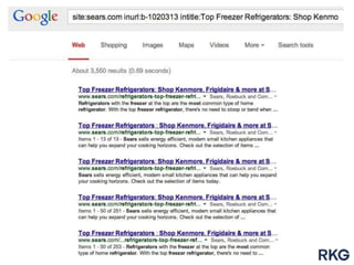 The document outlines the essential components of SEO for ecommerce, emphasizing the need for a solid technical, social, and content strategy to compete effectively in the online marketplace. Key points include addressing technical issues such as duplication and site speed, as well as optimizing content and category pages to enhance user experience. It also stresses the importance of mobile accessibility and using data-driven approaches to improve engagement and conversion rates.