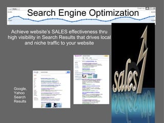 The document discusses search engine optimization (SEO) and how it can help increase a website's visibility and traffic. It provides testimonials from clients who saw positive results after working with an SEO consultant. The consultant offers three SEO packages - Starter, Business, and Premium - ranging from 2 months to 2 years to help optimize websites for higher search engine rankings and more traffic. Key services include keyword research, on-page optimization like meta tags and content, off-page activities like link building, and ongoing maintenance.