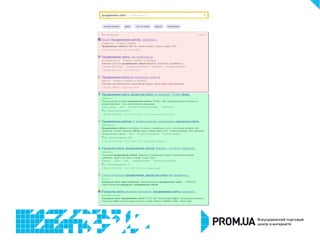 Документ описывает важность и основные аспекты поискового продвижения (SEO) сайтов, включая внутреннюю и внешнюю оптимизацию, подбор ключевых слов и создание качественного контента. Он подчеркивает, что SEO приносит долговременные результаты и требует регулярного обновления информации, однако результаты могут быть нестабильными из-за изменений алгоритмов поисковых систем. Также рассматриваются инструменты и подходы для успешного SEO, включая использование метатегов и анализ поведения пользователей.