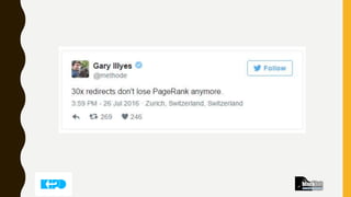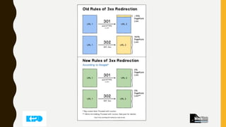 АКТУАЛНО • Никога непренасочвайте страниците връщащи 404 header към началната страница. Google обяви официално, че вижда тези пренасочвания като soft 404 грешки. • Според Google 302 redirect предава PageRank. Това не означава, че е вярно, още повече, че трябва да правите всичките си пренасочвания с 302  • MajesticSEO прихваща линкове от редиректнати сайтове. Ahrefs, Ose и LRT имат проблеми с това. Majestic поставя редиректнатия сайт във графа Linking root domains, възприемайки го, като обикновен Linking root domain.