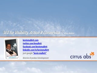 The document discusses various aspects of search engine optimization (SEO) including technical factors, competitive analysis, and the importance of site visibility and content freshness. It highlights recent changes in search algorithms by Google and offers actionable steps for improving site rankings. Emphasis is placed on understanding search engine criteria and leveraging local searches to enhance marketing effectiveness.