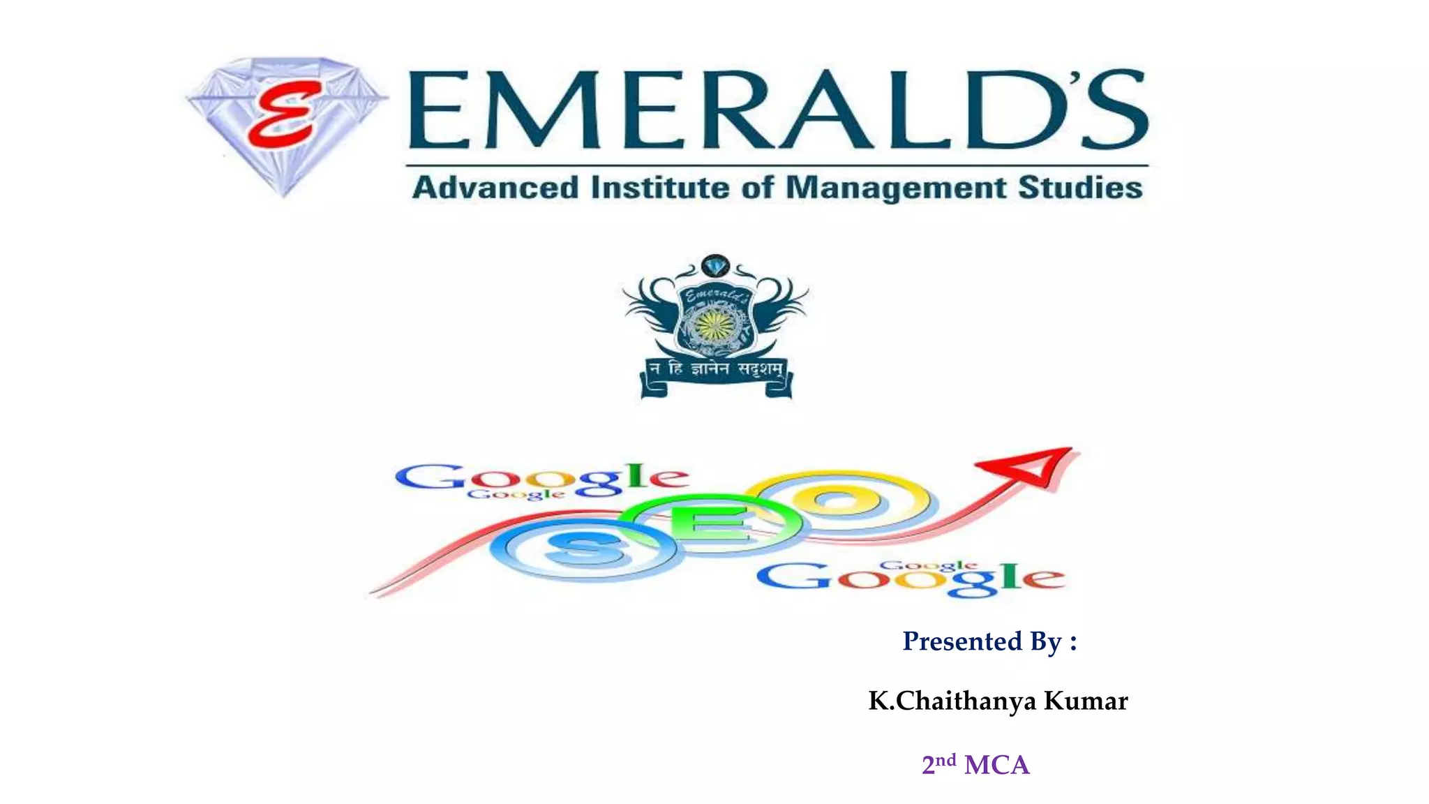 This document summarizes a technical seminar on search engine optimization (SEO). It discusses key topics like what SEO is, how it works, different SEO techniques including on-page and off-page optimization as well as social media optimization. Specific SEO strategies covered include keyword research, meta tags, links and content. It also addresses Google algorithms like Panda and risks of using copyrighted content. The seminar highlights how SEO can help websites rank higher on search engines through techniques like backlinks and relevant content.