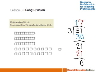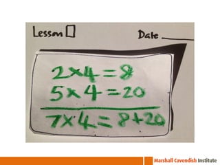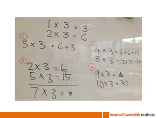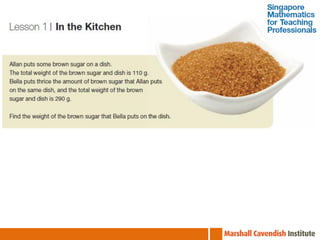 The document outlines a professional development course on Singapore Mathematics, emphasizing its distinct approach to problem-solving and conceptual understanding through the CPA (Concrete-Pictorial-Abstract) framework. It discusses various teaching methods, such as the use of bar models and differentiated instruction strategies to engage advanced learners effectively. The course aims to illustrate how these methods facilitate students' understanding of mathematical concepts and improve their problem-solving skills.