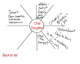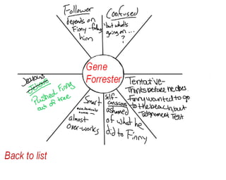 Character wheels assembled by Mr. Sheehy's English 10 students as the read the first half of Knowles's A Separate Peace.