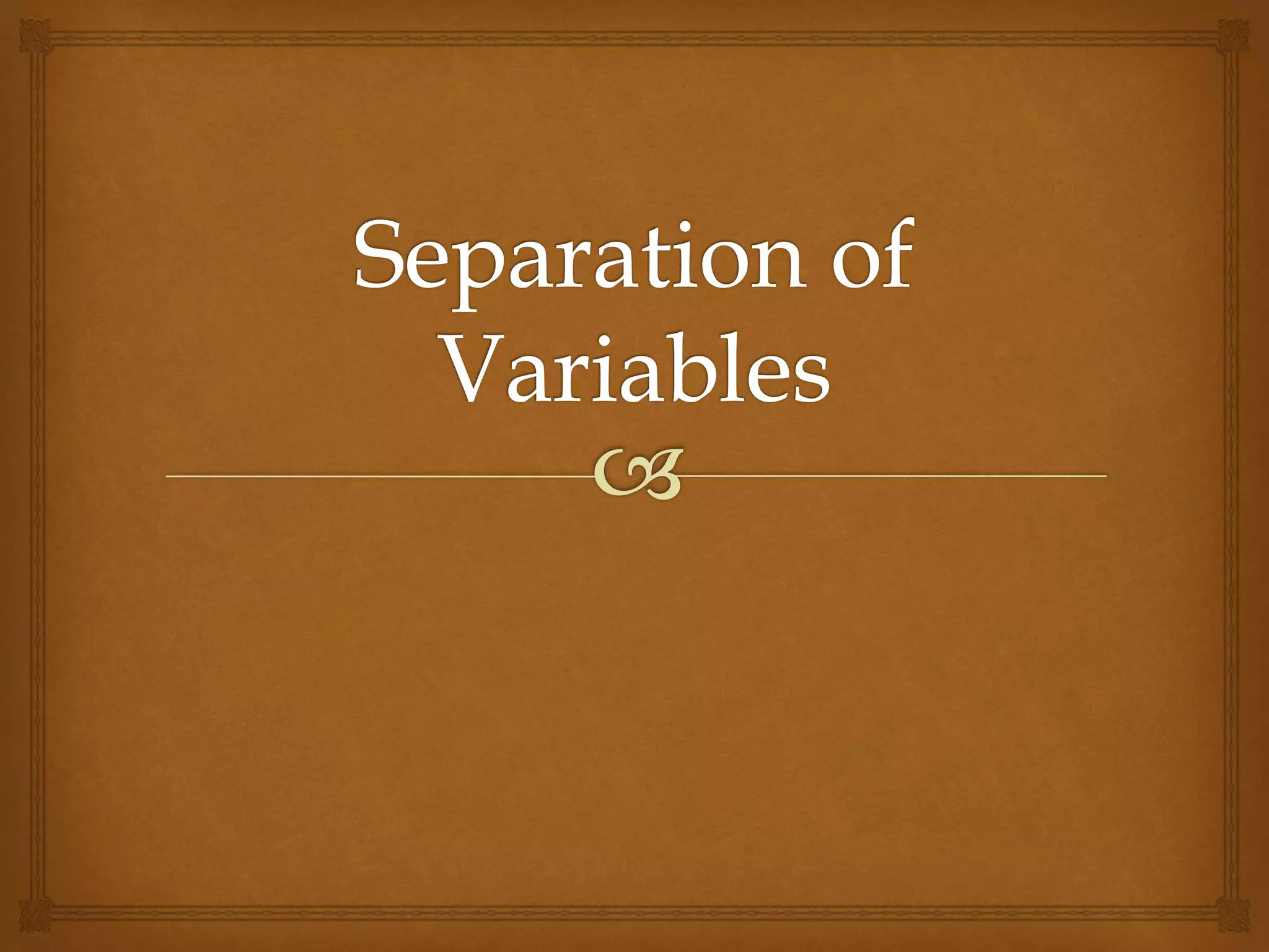 This document repeatedly discusses the technique of separation of variables for solving differential equations. Separation of variables involves separating the variables in a differential equation so that one variable is isolated on the left side of the equals sign and the other variable is isolated on the right side, allowing each side to be integrated separately. The document focuses exclusively on explaining and demonstrating the method of separation of variables.