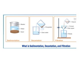 The document provides an overview of various methods used to separate mixtures, including techniques for solid-solid, solid-liquid, liquid-liquid, liquid-gas, and gas-gas separations. Key methods discussed include sublimation, magnetic separation, solvent extraction, filtration, distillation, and chromatography, each suitable for specific types of mixtures. Examples of mixtures and the appropriate separation techniques are also provided to illustrate the concepts.