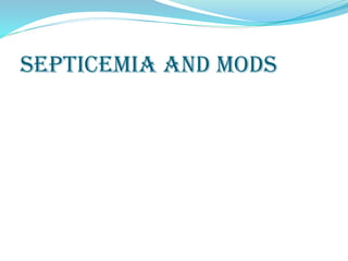 This document discusses sepsis, septicemia, and multiple organ dysfunction syndrome (MODS). It defines related terms like bacteremia, systemic inflammatory response syndrome (SIRS), sepsis, severe sepsis, and septic shock. It discusses the magnitude of the problem globally and in India. It covers the pathophysiology and most common sources of infection. It also summarizes the Surviving Sepsis Campaign guidelines for management of sepsis and septic shock. Finally, it provides an overview of recent advances and controversies in the field and lists various biomarkers that can be used for diagnosis, prognosis, and stratification of sepsis severity.