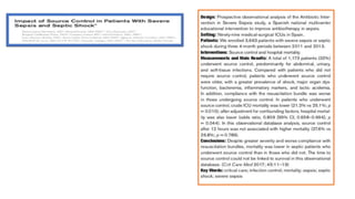 The document discusses optimizing source control for sepsis patients. It recommends: