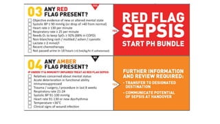 The document outlines the training program for understanding sepsis, a life-threatening condition caused by the body's response to infection, leading to organ dysfunction. It details the definitions, causes, symptoms, diagnostic criteria, treatment options, and risk factors associated with sepsis and its distinction from infections. Additionally, it describes the physiological response to sepsis, emphasizing how it affects various organ systems and the importance of early identification and intervention.