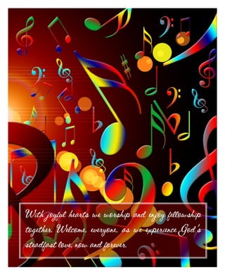 The document provides details of a worship service at Knightdale Baptist Church on September 21st, 2014 including songs, scripture readings, and a message titled "What Feeling Sounds Like". It also includes announcements about upcoming events like Homecoming on October 5th and opportunities to volunteer with organizations like Read and Feed.