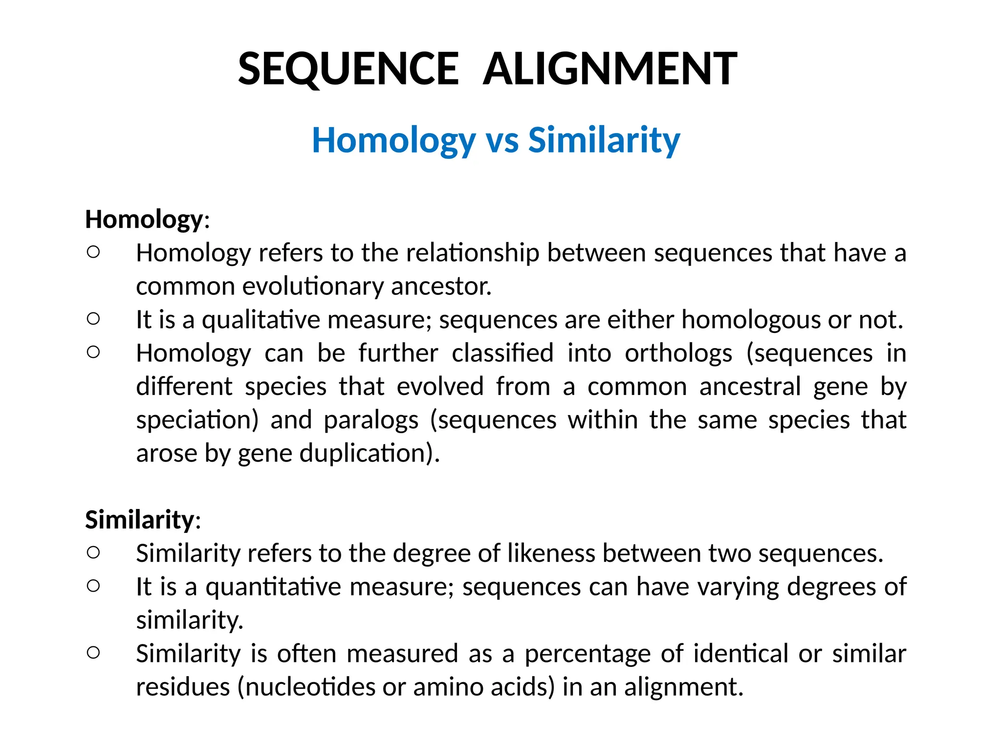 o It is a qualitative measure; sequences are either homologous or not.