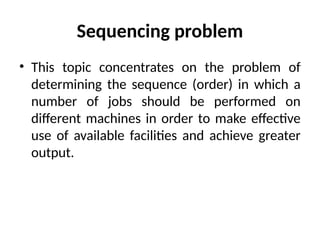 consideration, and repeat steps 1 and 2 until an optimal sequence is found.