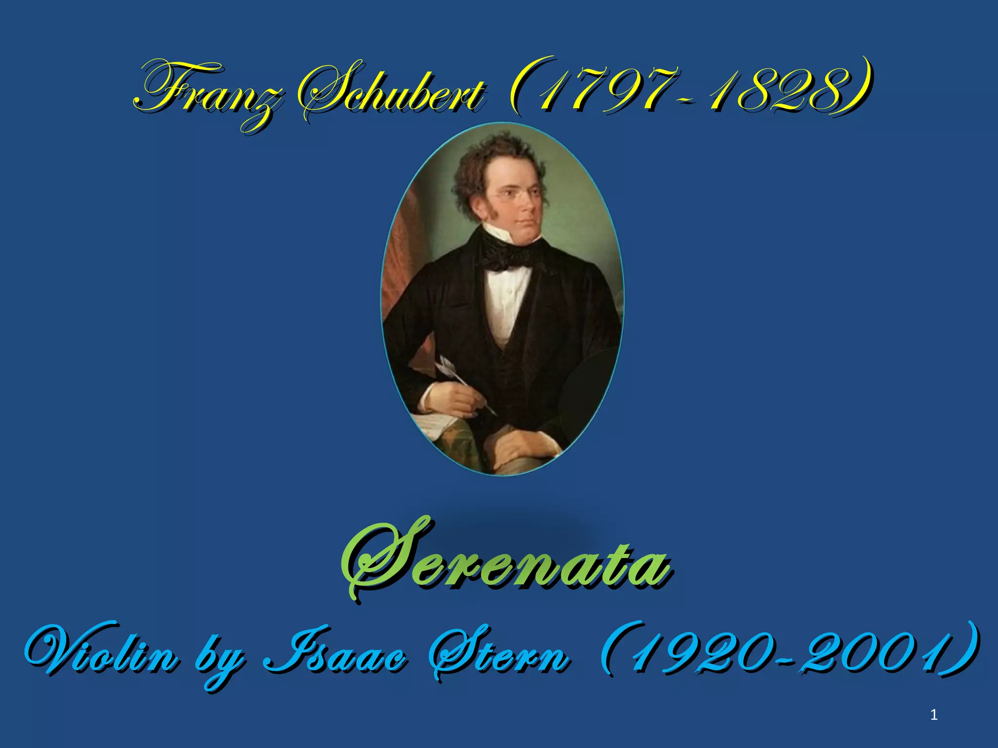 Franz Schubert was an Austrian composer who lived from 1797 to 1828. The document provides information about a performance of his Serenata piece played on violin by famous violinist Isaac Stern who lived from 1920 to 2001 and recorded it in April 2012.