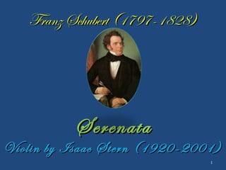 This document contains a 47-second recording of Franz Schubert's Serenata performed on violin by renowned violinist Isaac Stern. The recording spans from measure 1 to measure 47 of the piece and was captured during a performance in April 2012.