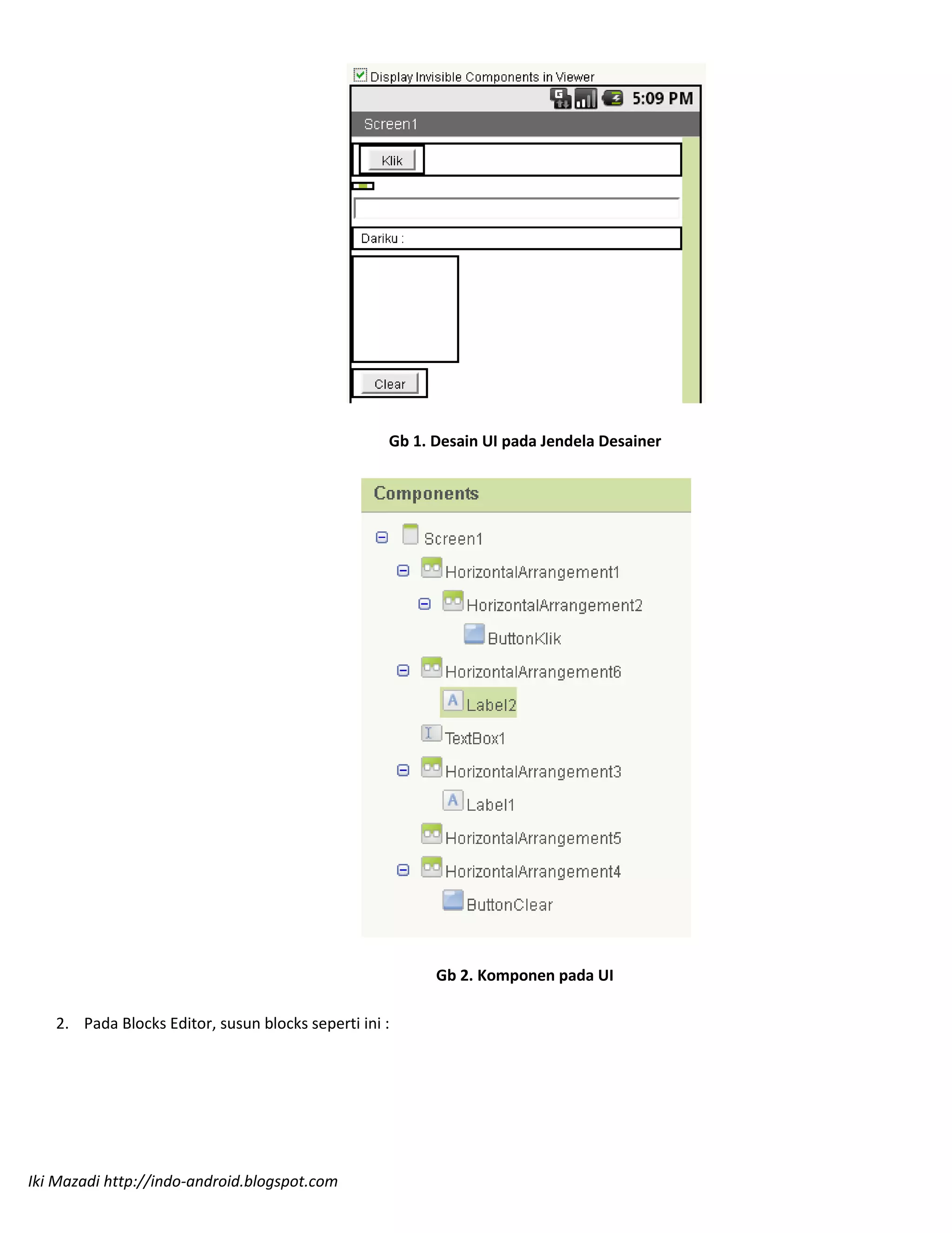 3. Penggunaan komponen seperti button, textbox, label dan horizontal arrangement diperlukan untuk mendesain antarmuka pen