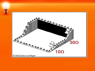 A series circuit has one path for electrons to flow between any two points, so if one component breaks the entire circuit is broken. A parallel circuit has multiple paths so if one component breaks the other paths remain intact. In a series circuit, the current through each resistor is the same while the overall resistance is the sum of individual resistances. In a parallel circuit, the voltage across each resistor is the same while the overall resistance is calculated by taking the inverse of the sum of the inverses of individual resistances. Electric power represents the rate of energy conversion and is measured in watts, while electric energy represents the presence and flow of electric charge and is measured in watt-hours by electric meters.