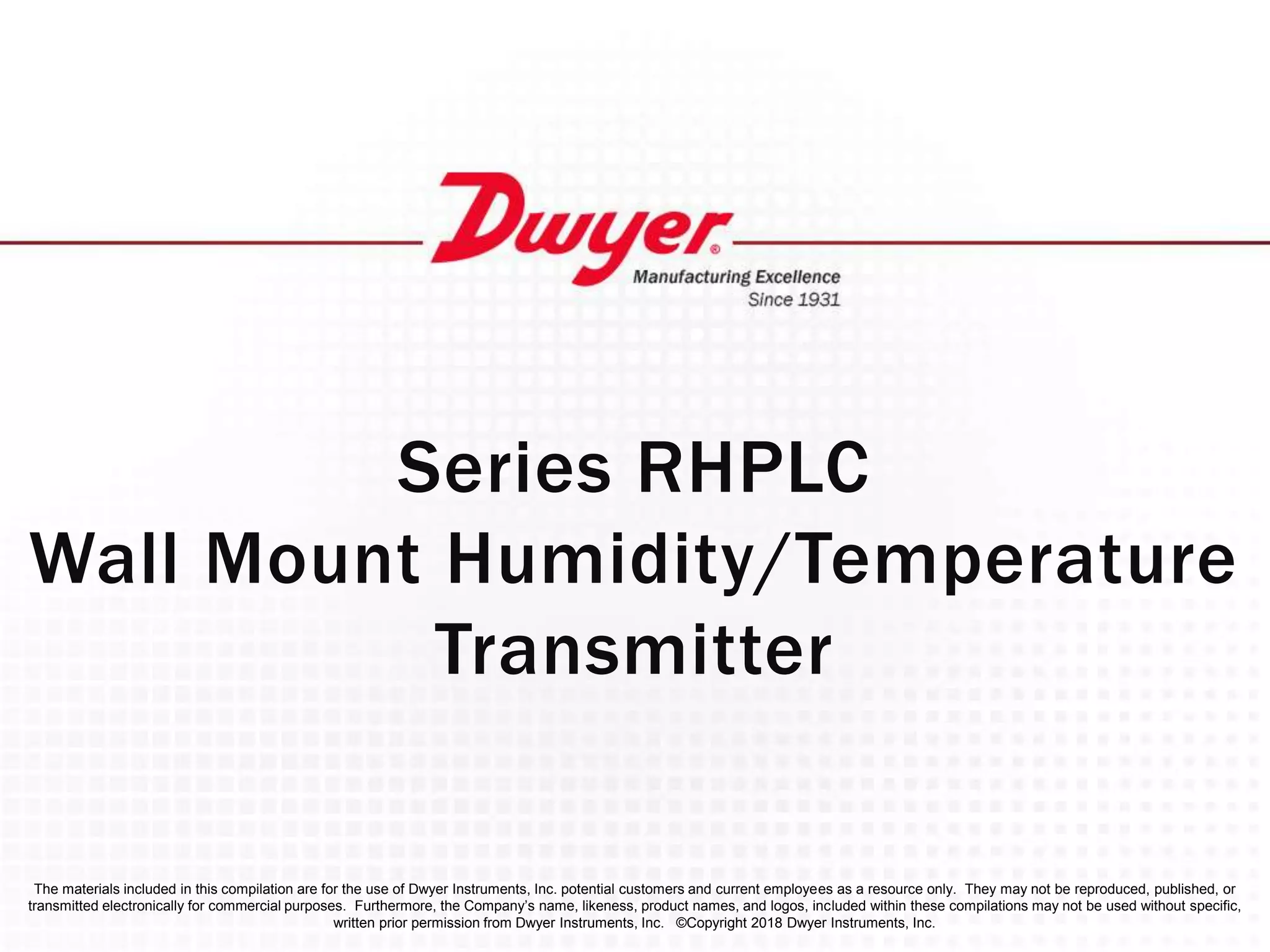The Series RHPLC is a compact and economical humidity/temperature transmitter designed for building automation, offering various output configurations and high accuracy. Key features include low cost, easy installation, and wide temperature and humidity ranges. Technical support and ordering information are available through Dwyer Instruments, Inc.