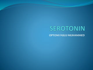 Serotonin (5-HT) is synthesized from tryptophan and is found in the intestine, platelets, and brain. It is stored in nerve endings and platelets then released and reabsorbed by serotonin transporters. There are multiple types of serotonin receptors which mediate its various actions in the cardiovascular, gastrointestinal, respiratory, and central nervous systems. Serotonin can both constrict and dilate arteries, stimulate smooth muscles and peristalsis, inhibit gastric acid and protect ulcers, and cause pain sensations and hyperventilation when activated.