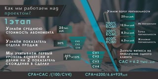 Документ представляет анализ эффективности контекстной рекламы для фитнес-центров, включая показатели по обращениям, стоимости и конверсии для разных кейсов. Проверены результаты по CPA и конверсии, предложено ведение рекламы с учетом KPI и контроля расходов. Используются инструменты аналитики для фиксации результатов.