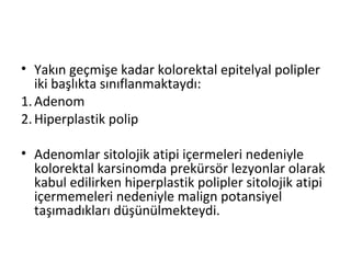 • Yakın geçmişekadar kolorektal epitelyal polipler