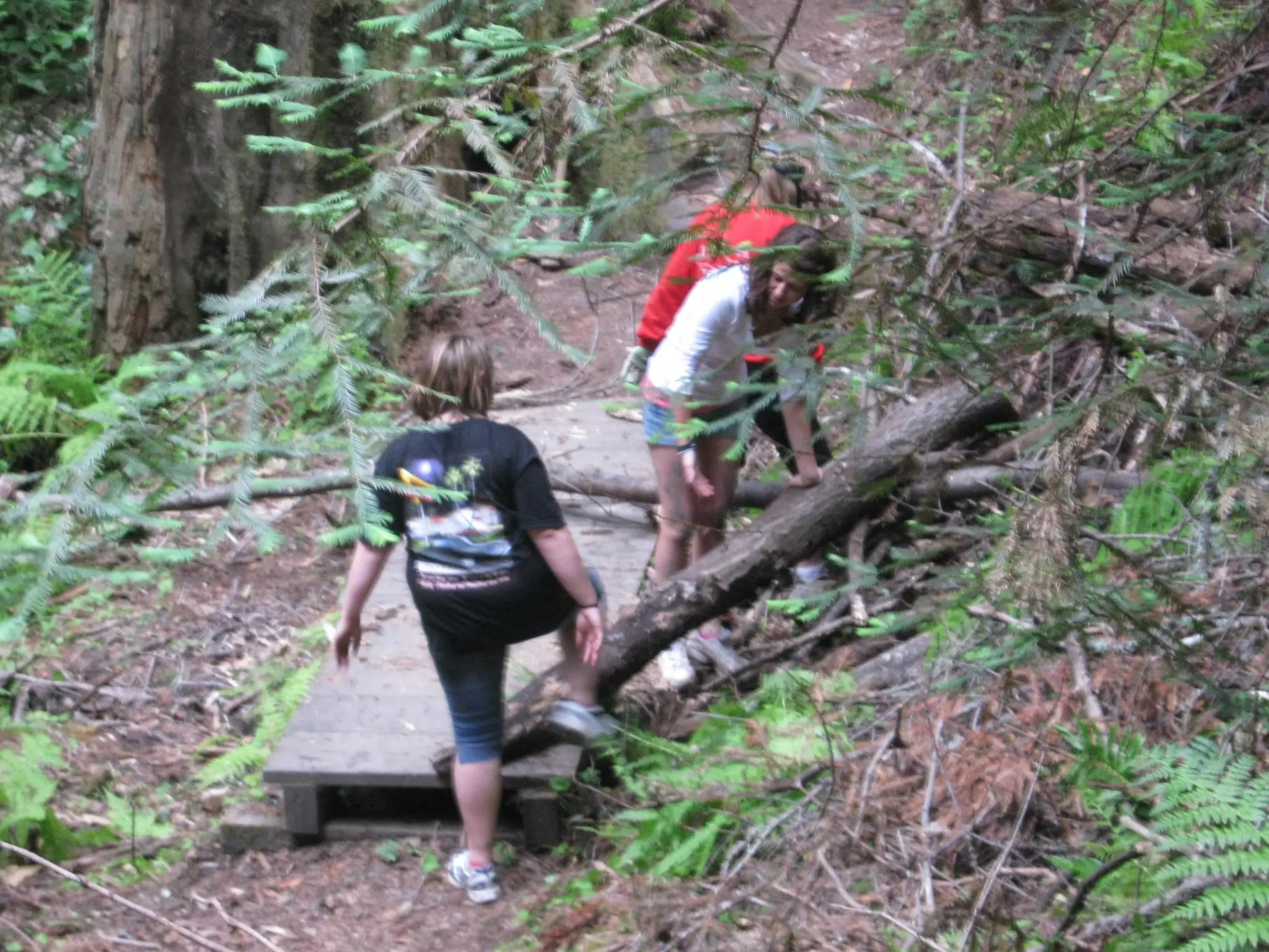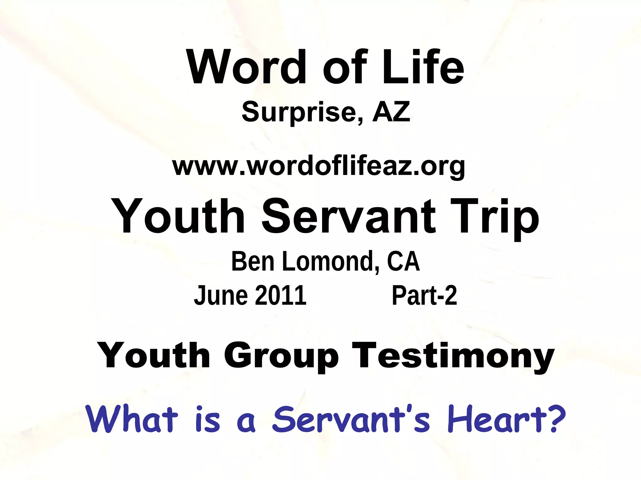 This document is a summary of a youth group trip to serve at Ben Lomond, CA in June 2011. It provides photos and captions that describe the group's activities which included ladder challenges, trail repair, daily Bible studies, kayaking, serving at a food packing line for the elderly, living in cabins with other groups, and learning from uncommon Bible characters. The trip concluded with a closing service where the youth shared what they learned about having a servant's heart.