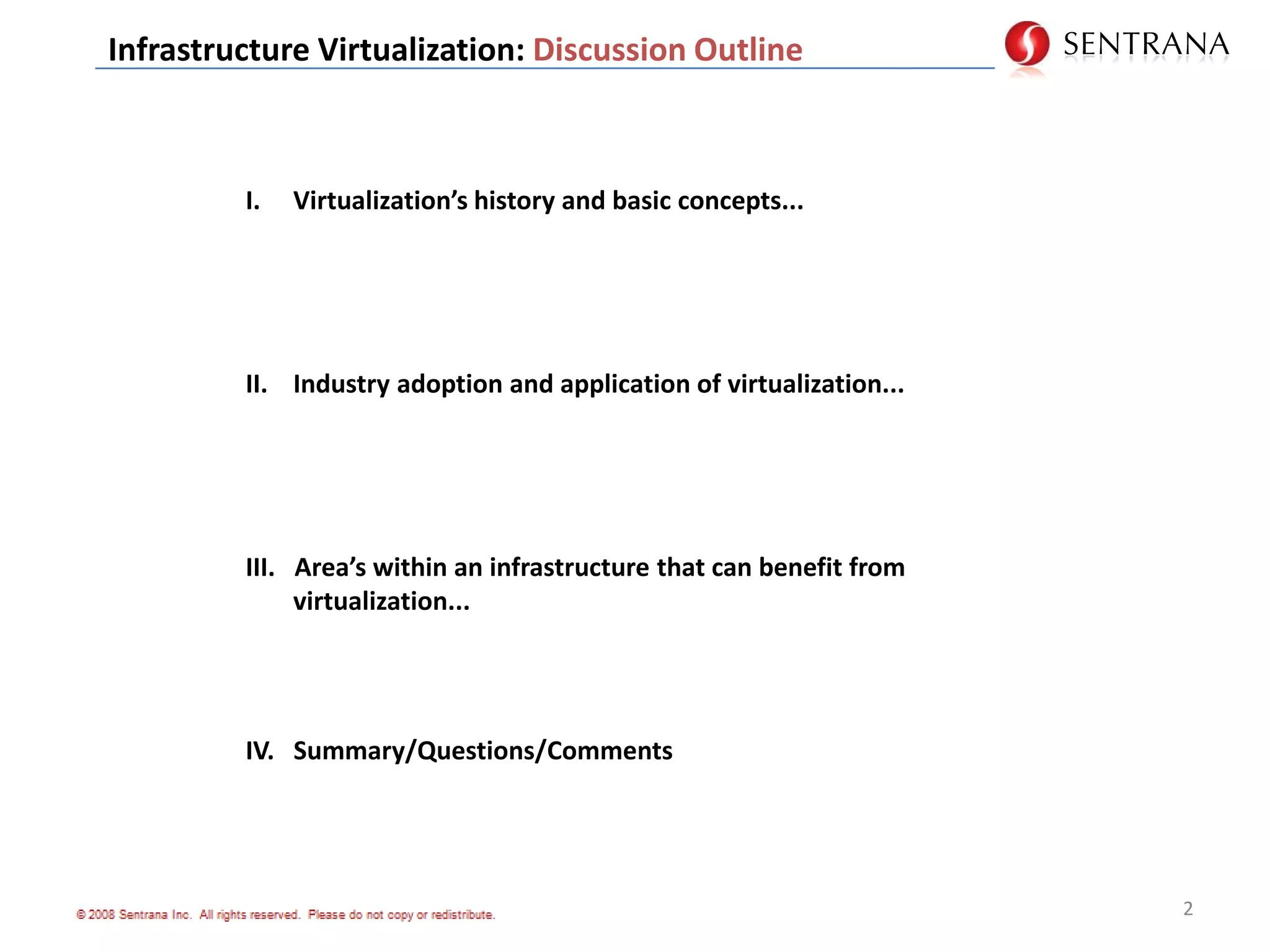 This document discusses how infrastructure virtualization can benefit disaster recovery (DR), high availability (HA), server consolidation, and testing/development. For DR, virtualization allows backups to be performed efficiently from snapshots without impacting production servers. For HA, virtual machines can be migrated seamlessly between host servers in the case of failure. Server consolidation maximizes hardware utilization reducing costs. For testing, a virtual infrastructure provides isolated virtual environments that accelerate development cycles.