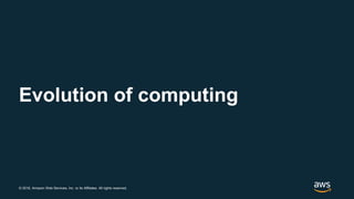 The document discusses the evolution of computing from physical servers to serverless architectures offered by AWS. It highlights the benefits of serverless computing, including reduced management overhead, scaling with usage, and integrated fault tolerance. Additionally, it covers AWS Lambda's functionality, common use cases, pricing models, and best practices for optimizing serverless applications.