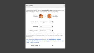 We adopted a serverless architecture to build a real-time analytics solution for tracking website usage. This involved using AWS Lambda functions triggered by events in Amazon Kinesis streams to index data from API requests in Amazon Elasticsearch. The serverless approach allowed us to focus on solving business problems rather than managing infrastructure, and provided built-in monitoring, auto-scaling, and pay-per-use billing. While some services like API Gateway could become expensive at high volumes, we optimized costs by batching requests and retrieving data in batches from Kinesis. The resulting solution met our goals of speed, cost-effectiveness, and reduced maintenance.