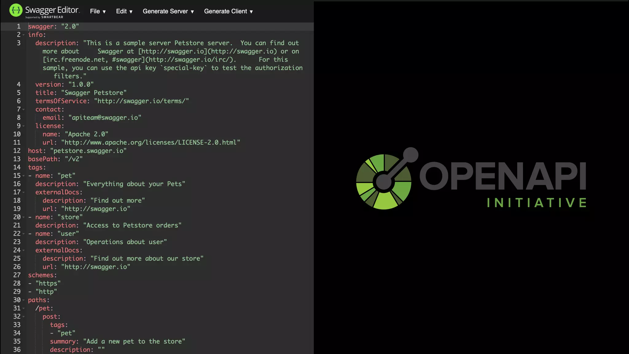 The document discusses the evolution and significance of the Swagger API specification, which began development in 2010 and was later renamed the OpenAPI Specification in 2016. It highlights key milestones, including the formation of the OpenAPI Initiative in 2015 and the release of version 3.0.0 in 2017, aimed at standardizing machine-readable interface files for RESTful web services. The workshop, presented by Chris Bailey at IBM, focuses on server-side Swift and related tooling like Swagger Editor and Swagger Codegen.
