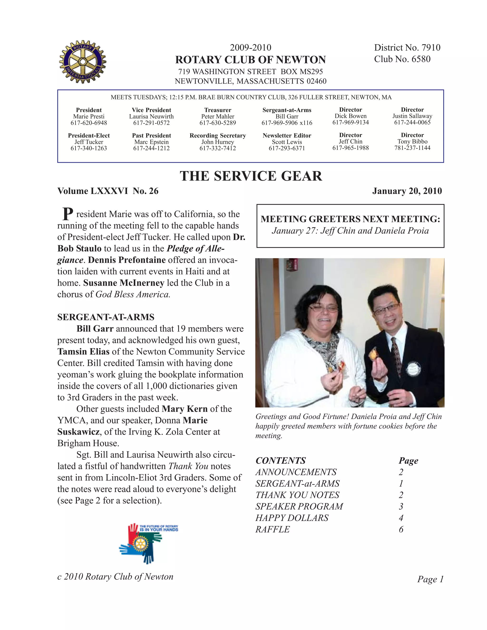 This document summarizes the minutes from a Rotary Club of Newton meeting held on January 20, 2010. It provides information about the club's officers and directors, as well as a summary of the activities from the meeting, including a presentation by the director of the Irving K. Zola Center on resources for disabled individuals. Thank you notes were read from elementary school students who received dictionaries from the club. The club also discussed upcoming fundraising events like Death by Chocolate.