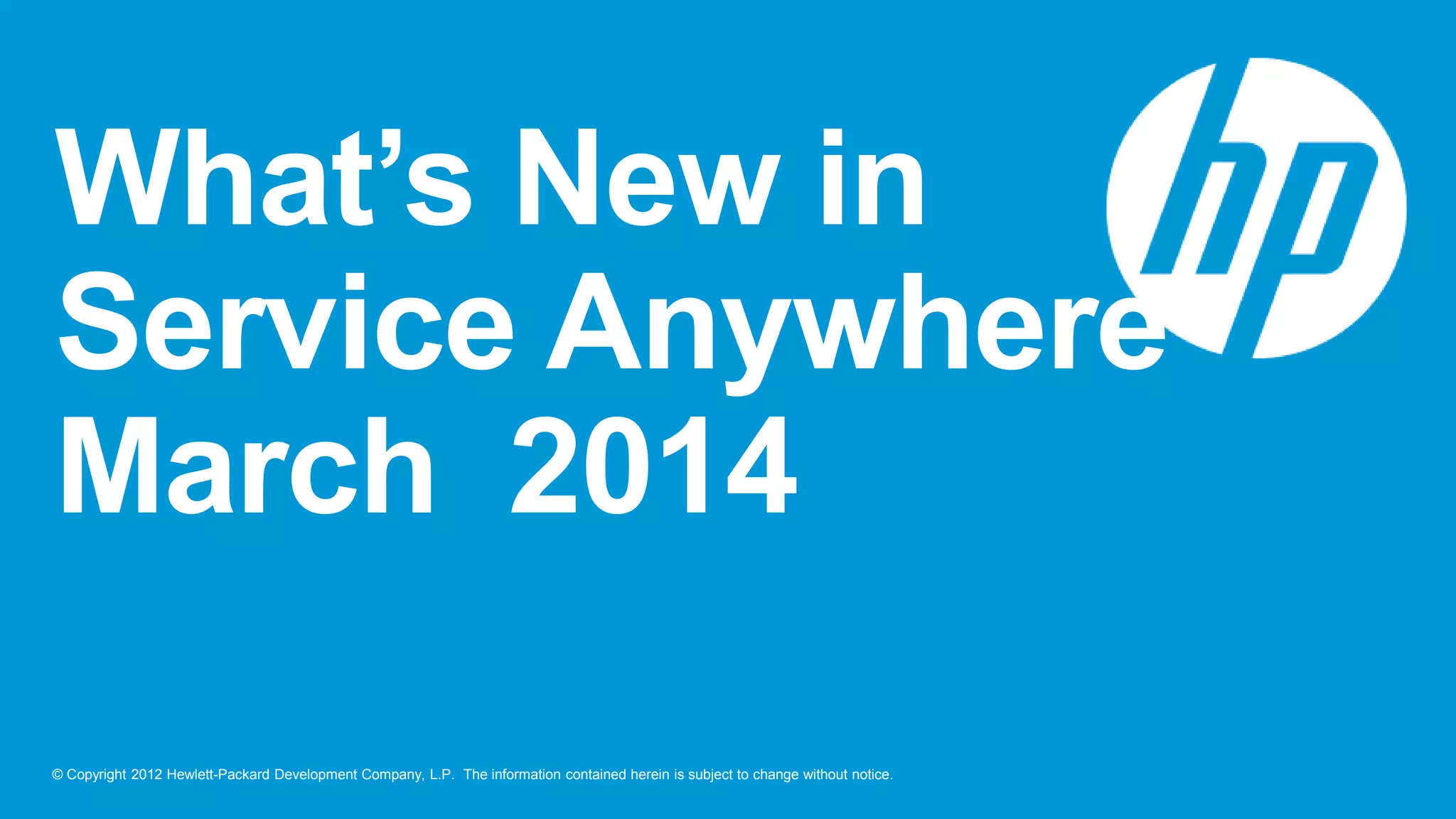 The document outlines updates and features of HP Service Anywhere as of March 2014, including incident management, problem management, and analytics. Key highlights include a continuous delivery model, a change calendar for impact visualization, and enhanced user experiences using big data. It also promotes a 30-day free trial for users and provides training resources available on their blog.