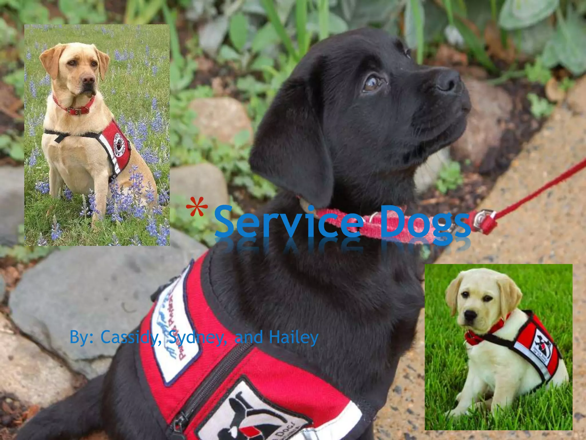 Service dogs are trained to assist individuals with disabilities by performing tasks to mitigate the effects of their disabilities. Guide dogs help blind or visually impaired individuals navigate and alert deaf individuals to sounds in their environment. Service dogs can also retrieve dropped items, wake individuals from sleep, and remind owners to take medication for psychiatric disabilities like depression. Effective service dogs possess traits like alertness, energy, and an ability to focus on their owner. While expensive to purchase fully trained, individuals can also work with experienced trainers to teach adopted dogs disability-specific tasks.