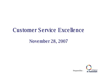 The document discusses customer service excellence and provides tips for providing exceptional customer service. It addresses understanding customer satisfaction, meeting and exceeding customer expectations through active listening and problem resolution. It also discusses using communication tools effectively, dealing with difficult customers, managing customer service stress, and setting standards to improve service quality.
