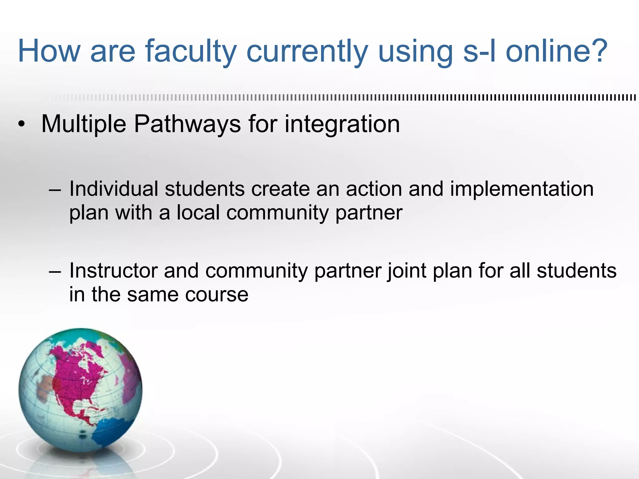 The document discusses the integration of service-learning in online courses through various pathways, highlighting individualized partnerships and collaborative community designs. It addresses challenges such as managing multiple community partners and geographic limitations while proposing potential solutions like small group collaborations and enhanced community engagement. Additionally, it emphasizes the importance of developing new models and sharing resources to enhance the effectiveness of online service-learning programs.
