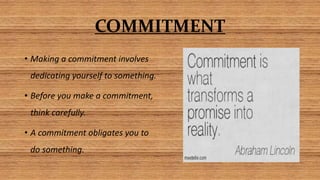 The document presents a customer service mindset emphasizing commitment, service excellence, and the need for businesses to focus on creating customer value and loyalty. It outlines the importance of quality service, customer engagement, and maintaining a positive customer experience as key differentiators for companies. To achieve service excellence, businesses should foster transparency, communicate effectively, own their mistakes, and actively seek customer feedback.