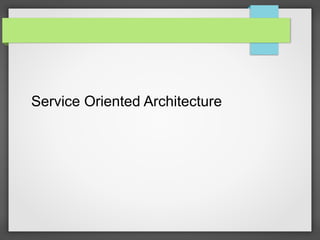 The document discusses Service Oriented Architecture (SOA), defining its principles and motivations, such as enabling flexible, federated business processes and optimizing business functions. It details how SOA structures business functionality into reusable services and emphasizes the importance of governance in implementing SOA effectively. Challenges of SOA, including increased complexity and the need for commitment from management, are also highlighted.