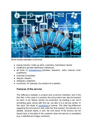 The service provider usually receives money for the service, but there are also services that are, for example, included in the price of a product. This could be, for example, the warranty repair of an electronic device (washing machine), the maintenance of a car or a replacement service.