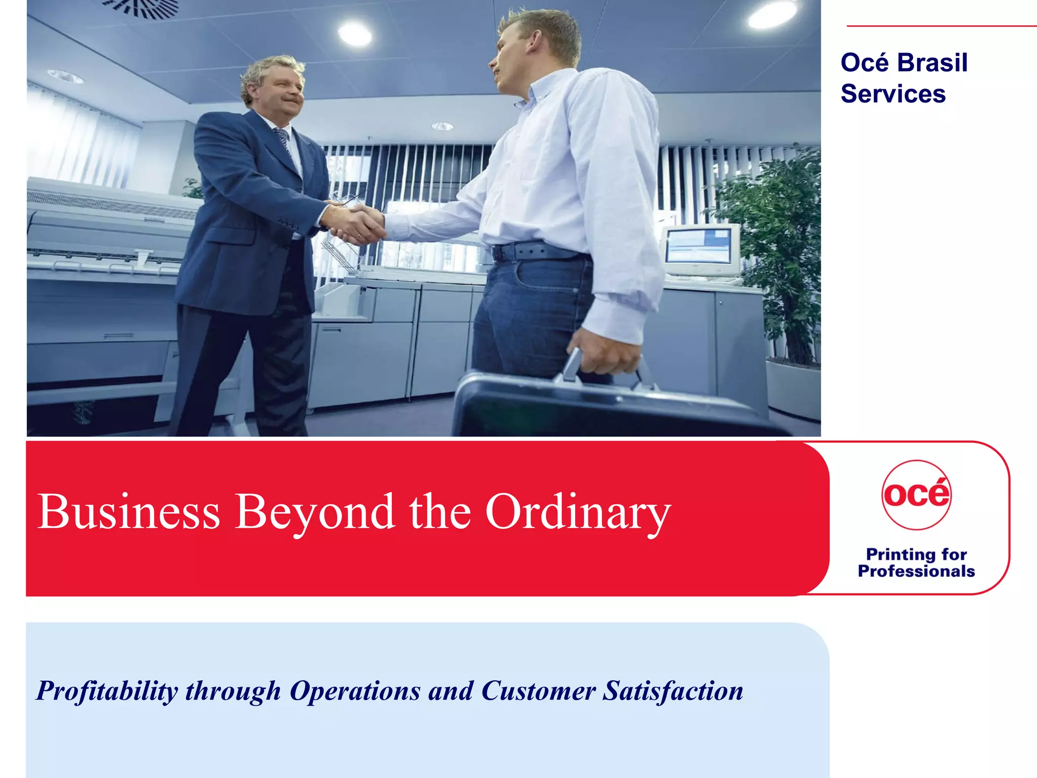 Océ Brasil Services aims to improve efficiency, grow revenues and reduce costs through its services business. The document discusses Océ's various service offerings including consulting, implementation, education, and support services. It also identifies opportunities in each area to introduce more services by addressing common problems customers face like cost cutting needs, productivity issues, and outdated equipment or software.