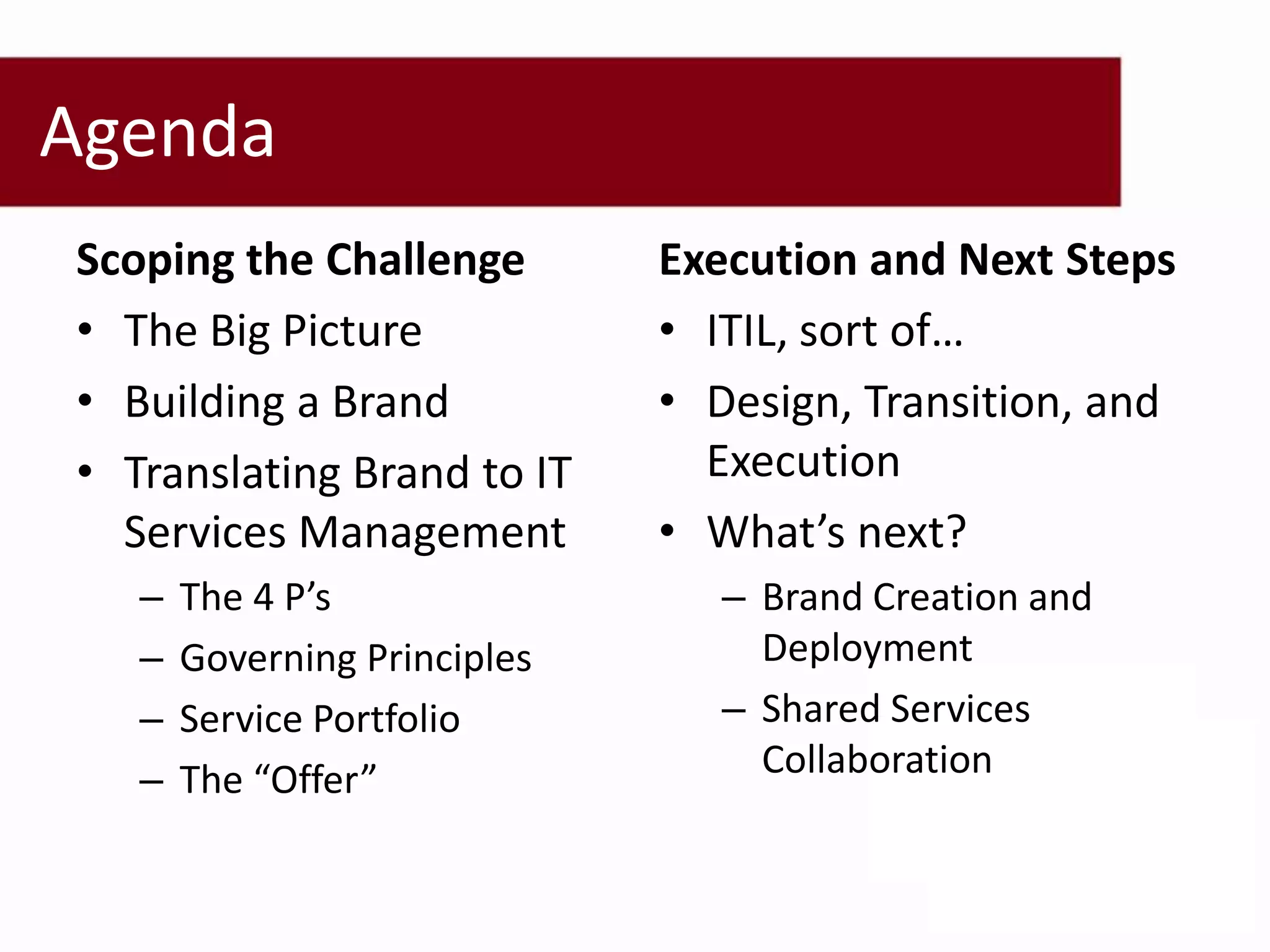 The document outlines a strategic plan for enhancing the OU IT experience through brand deployment and service management. It emphasizes the importance of customer engagement and collaboration while detailing the governance framework, service portfolio, and operations necessary to achieve a unified, customer-centric IT organization. Key focuses include brand identity, meaningful technology services, and maintaining consistency in service delivery across all campuses.