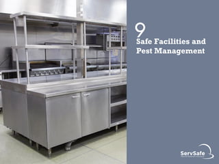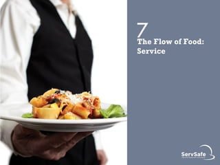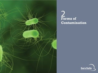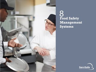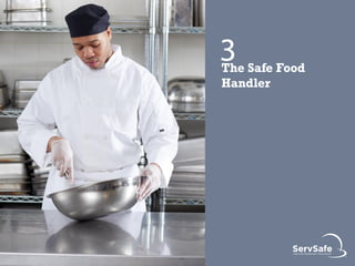 This document discusses providing safe food by identifying foodborne illness risks and ways to prevent contamination. It defines a foodborne illness and outlines challenges to food safety like time constraints and high-risk customers. Costs of foodborne illnesses to operations are listed, such as lost reputation and lawsuits. The five main risk factors for foodborne illness are identified as purchasing from unsafe sources, improper cooking, temperature abuse, contaminated equipment, and poor hygiene. Government agencies like the FDA and USDA regulate food safety. Proper training, monitoring, and following food safety procedures are emphasized as key ways to keep food safe.