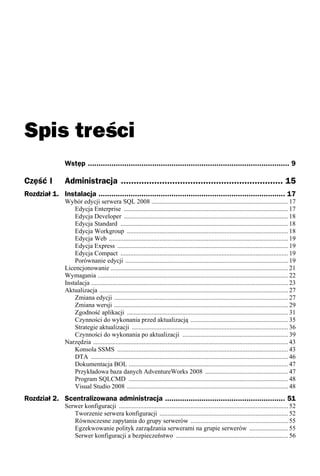 System zarządzania bazami danych MS SQL Server zyskał sobie zasłużoną renomę wśród projektantów baz danych i programistów. Stabilna i wydajna platforma, dostępna w kilku edycjach, różniących się możliwościami i zastosowaniami, wykorzystywana jest w aplikacjach biznesowych, portalach internetowych i aplikacjach mobilnych. Jej najnowsza wersja, oznaczona symbolem 2008, to potężna platforma do zarządzania danymi, umożliwiająca nie tylko przechowywanie ich w tabelach, ale także przetwarzanie, analizowanie, udostępnianie i zabezpieczanie. Pozwala ona także na składowanie danych nierelacyjnych — obiektów binarnych i danych geograficznych.
