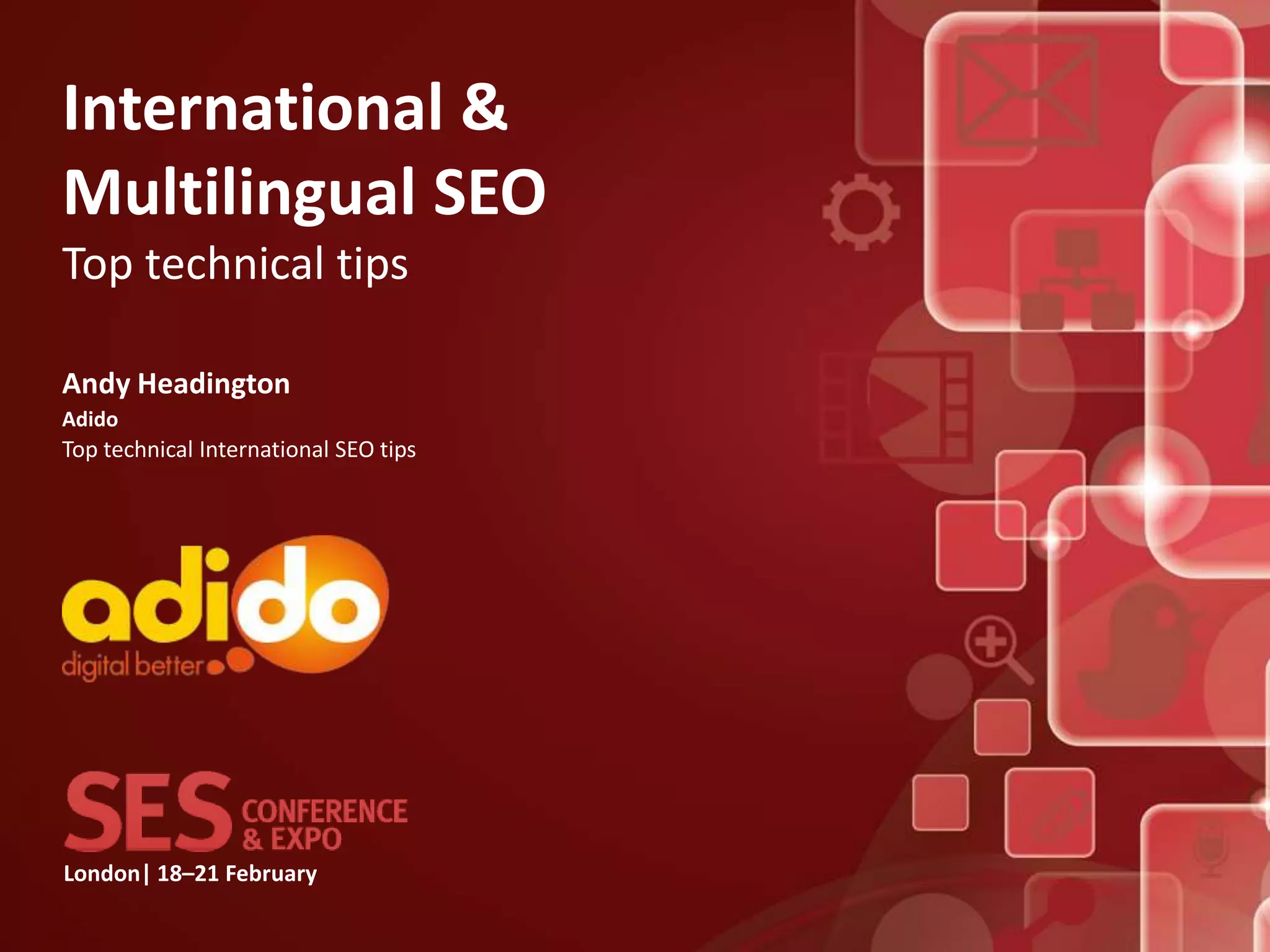 The document provides essential tips for effective international and multilingual SEO, emphasizing the importance of localizing content and avoiding simple translation. Key technical advice includes using the correct folder structure, hreflang tags, and understanding the unique SEO practices of different countries. Success in international SEO requires tailored campaigns for each targeted region, incorporating proper keyword research and localization strategies.