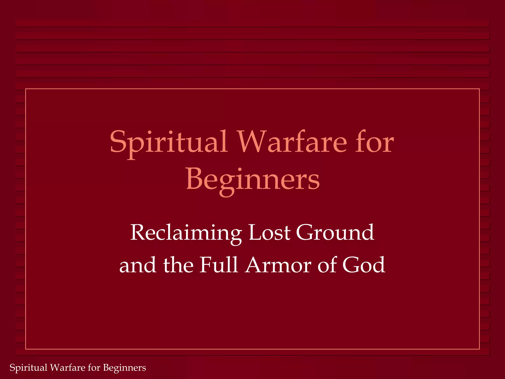 This document discusses spiritual warfare for beginners. It covers reclaiming lost ground by recognizing ways the enemy gains influence, like through sin and wrong behaviors. It also discusses the full armor of God, including the belt of truth, breastplate of righteousness, shoes of peace, shield of faith, helmet of salvation, sword of the spirit (God's word), and prayer. It emphasizes the battle is in the mind and how to demolish strongholds and take thoughts captive of Christ.