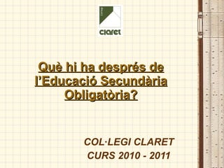 Batxillerat ⇛ 1 cicle de dos cursos que convencionalment comprenen dels 16 als 18 anys. ⇛ Estudis polivalents, integradors, flexibles i orientadors FORMACIÓ INTEGRAL DE L’ALUMNE ⇛ Preparació per a estudis posteriors: tant professionals com universitaris