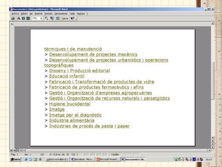 Es pot fer,encara que s’hauran de cursar totes les matèries obligatòries de modalitat que no s’hagin realitzat al primer curs. Les assignatures cursades en el primer curs passen a ser comptabilitzades com a assignatures optatives aprovades (de la nova modalitat) Permet l’accés a totes les carreres universitàries (sempre i quan s’aprovin les PAU) i als cicles formatius de grau superior (CFGS). Canvi d’especialitat i Capacitació