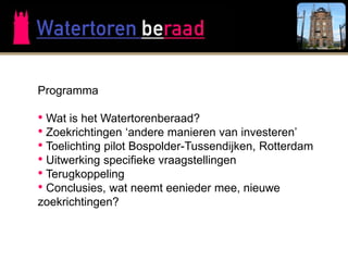 • Wat ishet Watertorenberaad?
